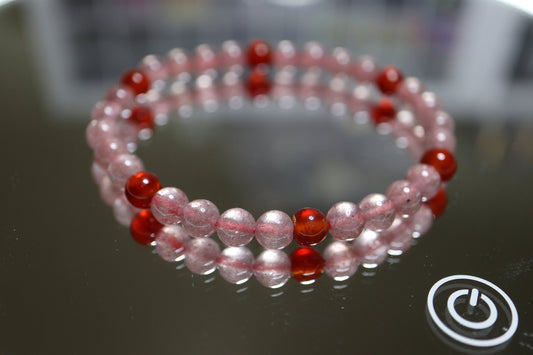 Strawberry Quartz with Red Agate Bead Crystal Bracelet