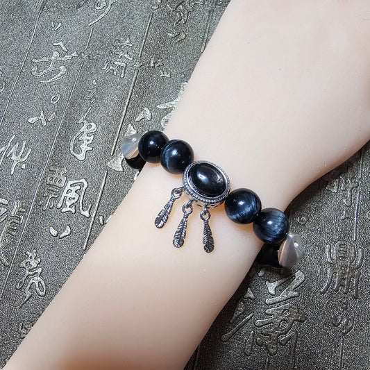 Natural Blue Tiger Eye Bracelect, Hypersthene Crystal Bracelet, Protection and Grounding, Wealth and Inner Strength