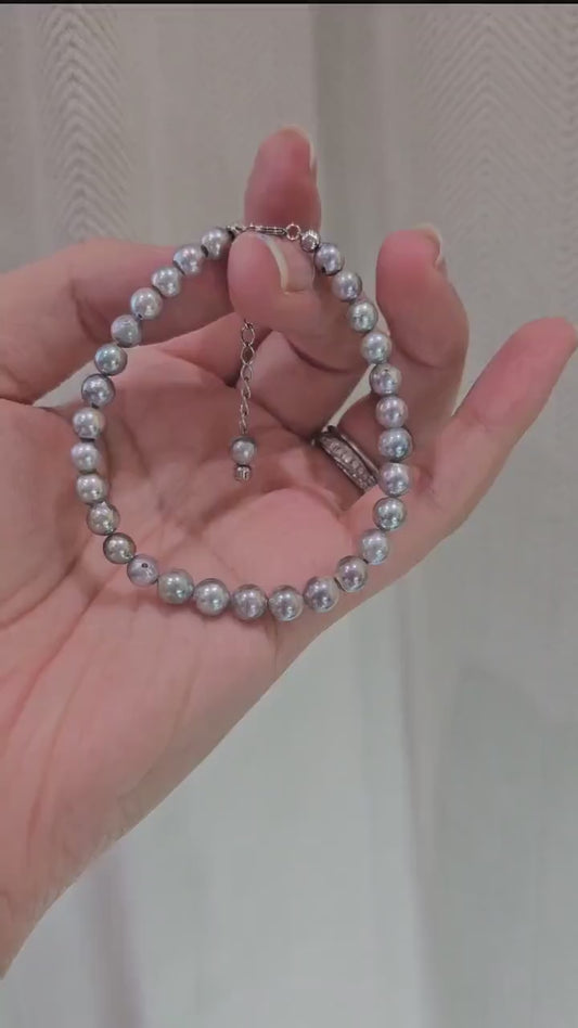 Natural Seawater Akoya Pearl with Grey Color, Small Saltwatee Akoya Pearl Bracelet